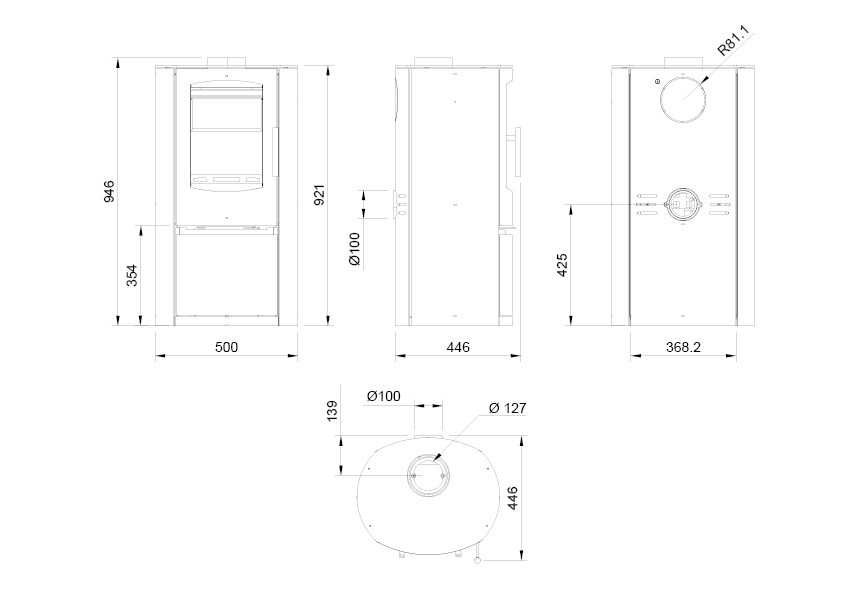 | Efficiency (%) | Wood 82.2 / Smokeless 83 |