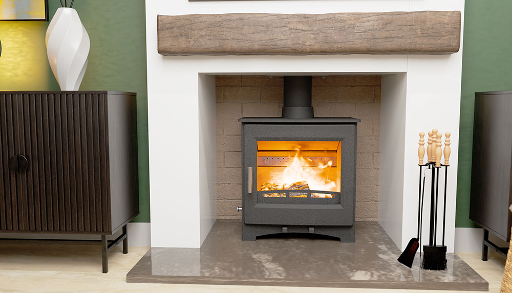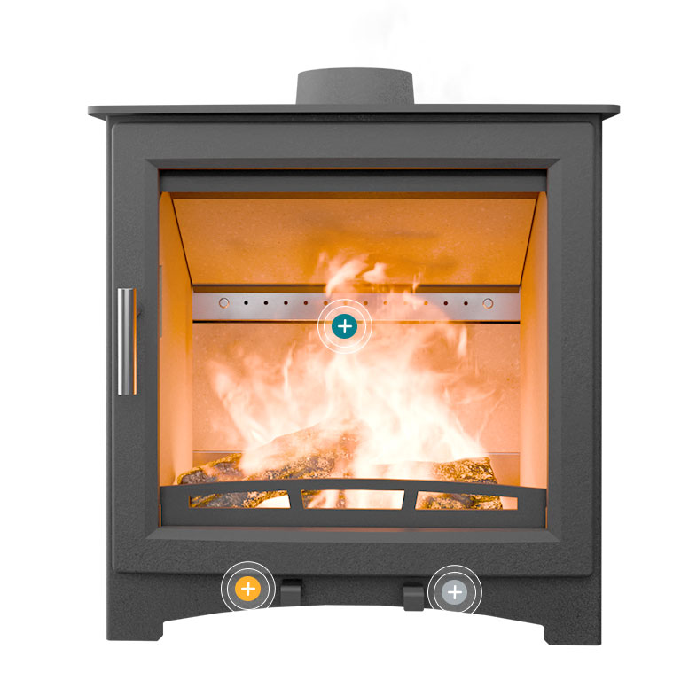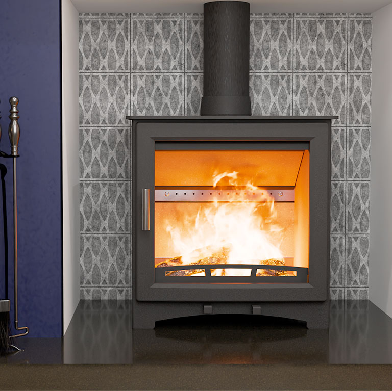 This stove is designed to heat expansive living areas while making a stunning statement in any home. With its commanding proportions and wide glass viewing window, the XL showcases a truly impressive fl ame display.
